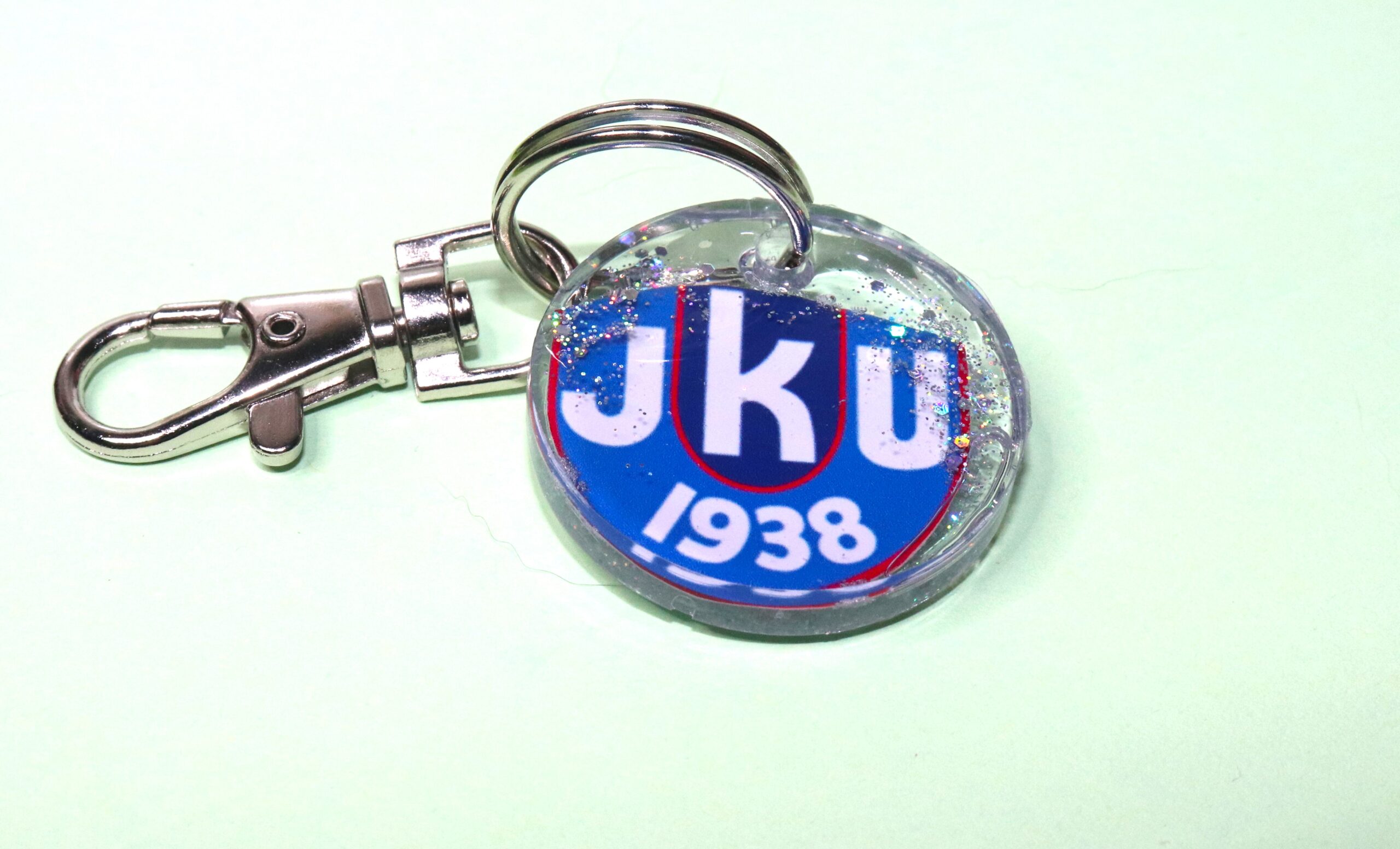 JKU-aiheinen avaimenperä eri värisillä hileillä.