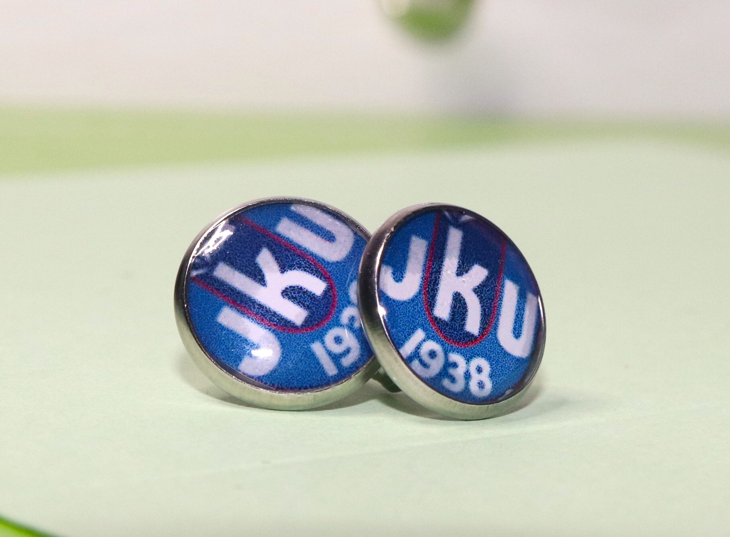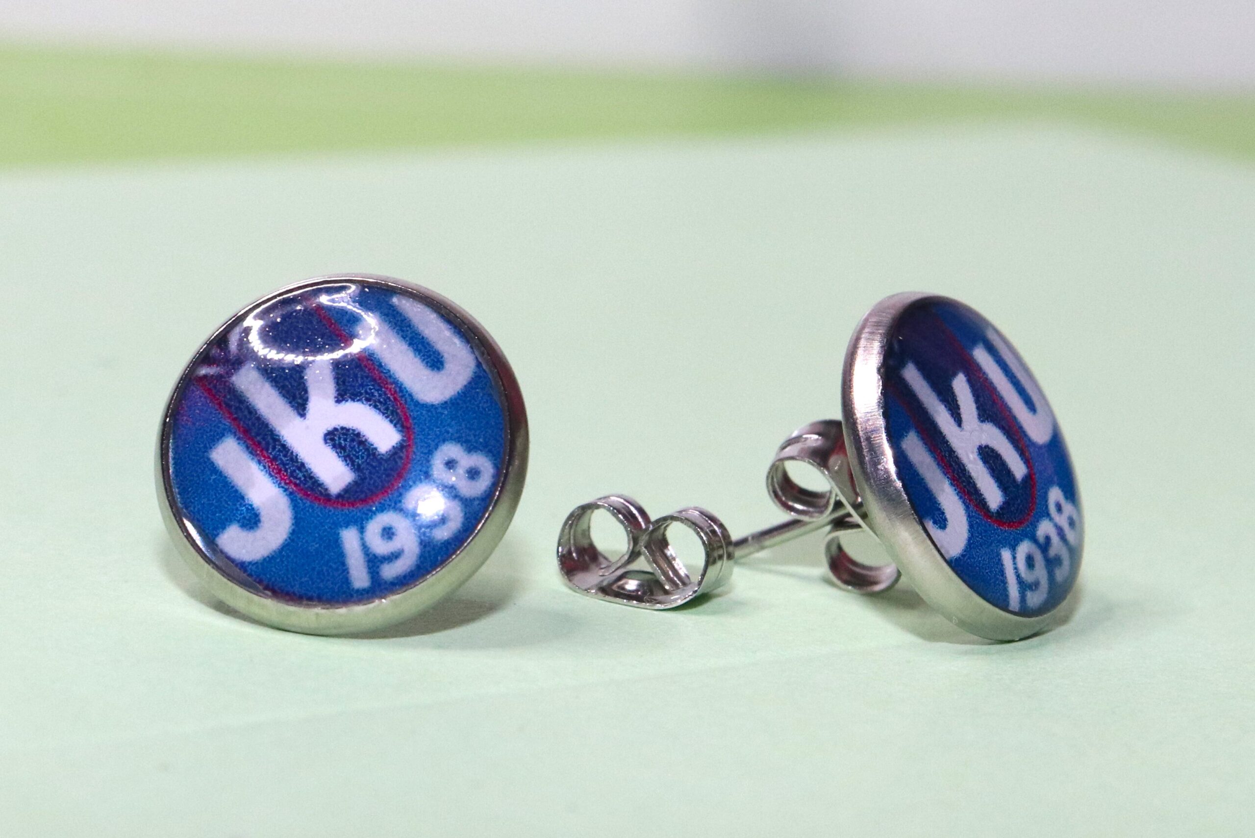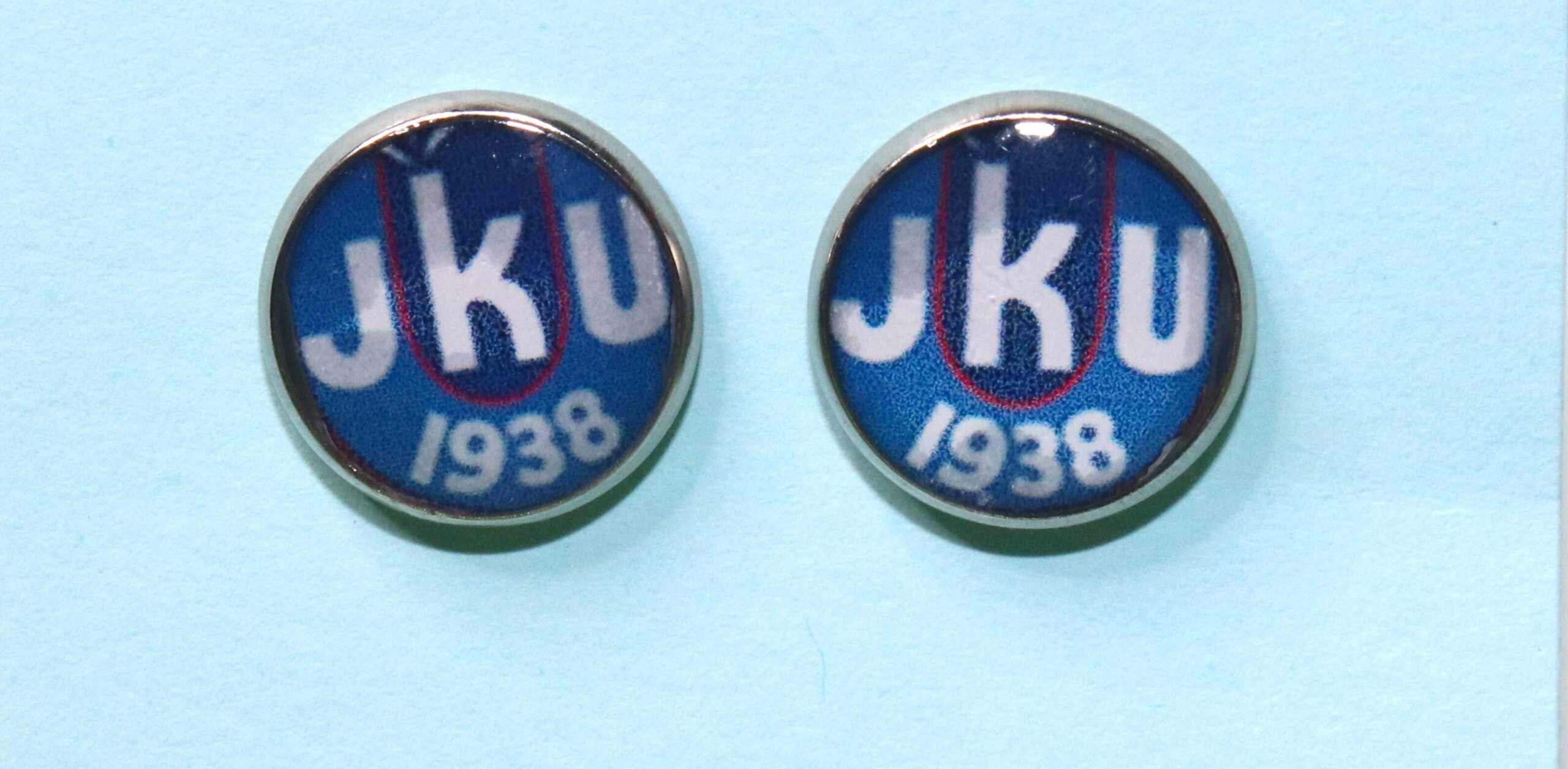 JKU-logolla varustetut nappikorvakorut.