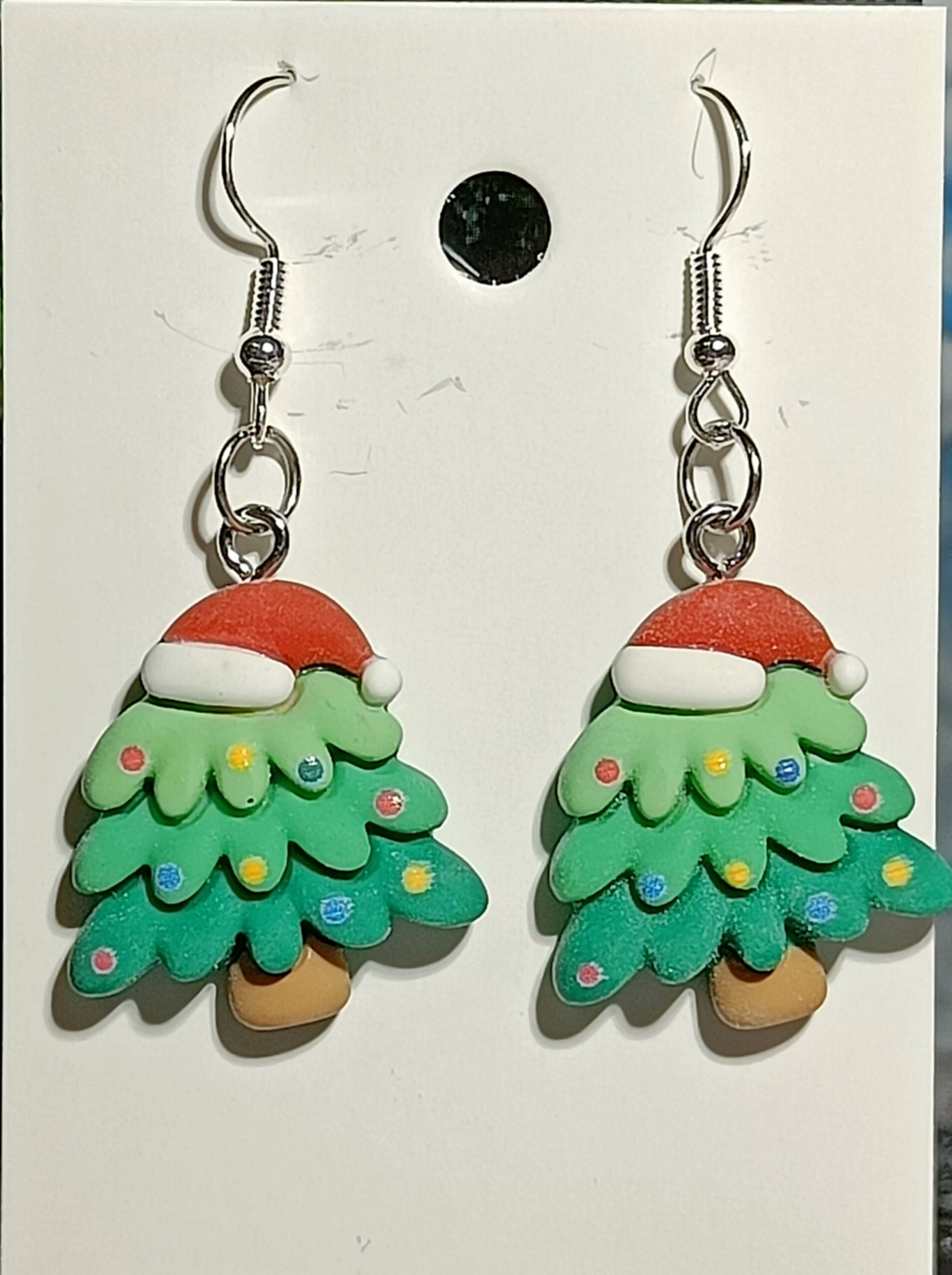 Veikeät joulukuusi – korvakorut. Eivät sisällä nikkeliä, kadmiumia tai lyijyä. Silikonitaustat.